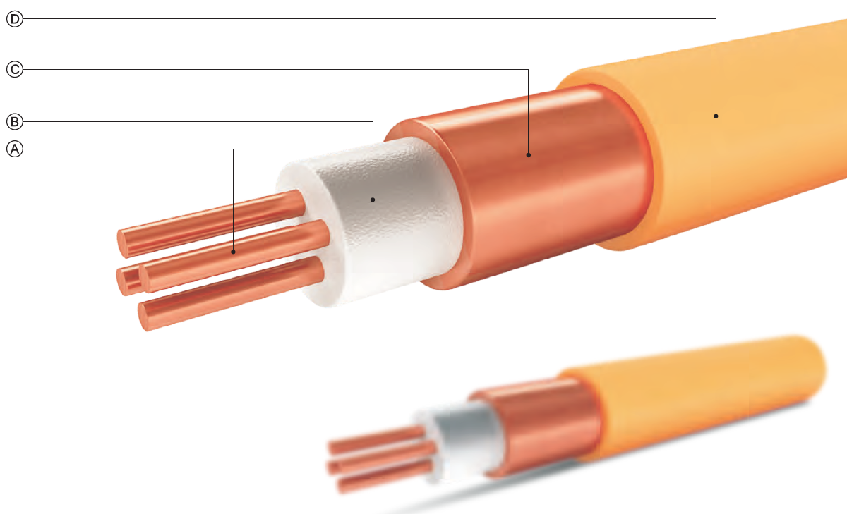 由于其用材和結(jié)構(gòu)的特殊性,決定了該產(chǎn)品具有有機(jī)電纜(塑料電纜)所無法比擬的電氣性能、機(jī)械性能、耐環(huán)境性能和環(huán)保性能。這種獨(dú)特的結(jié)構(gòu)使導(dǎo)體和絕緣材料的熔點(diǎn)分別為1083°C和2800°C。這使電纜在火災(zāi)條件下,設(shè)備同時(shí)能夠繼續(xù)在超過1000℃的溫度下仍然安全地負(fù)載運(yùn)行。