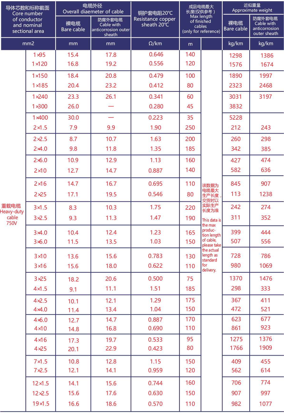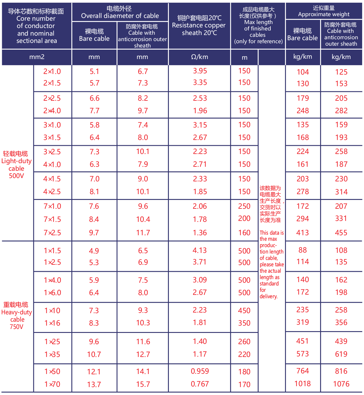 | WD-BTTYZ | 1.0~400mm2 | 1,2,3,4,7,12,19芯 | 750V |