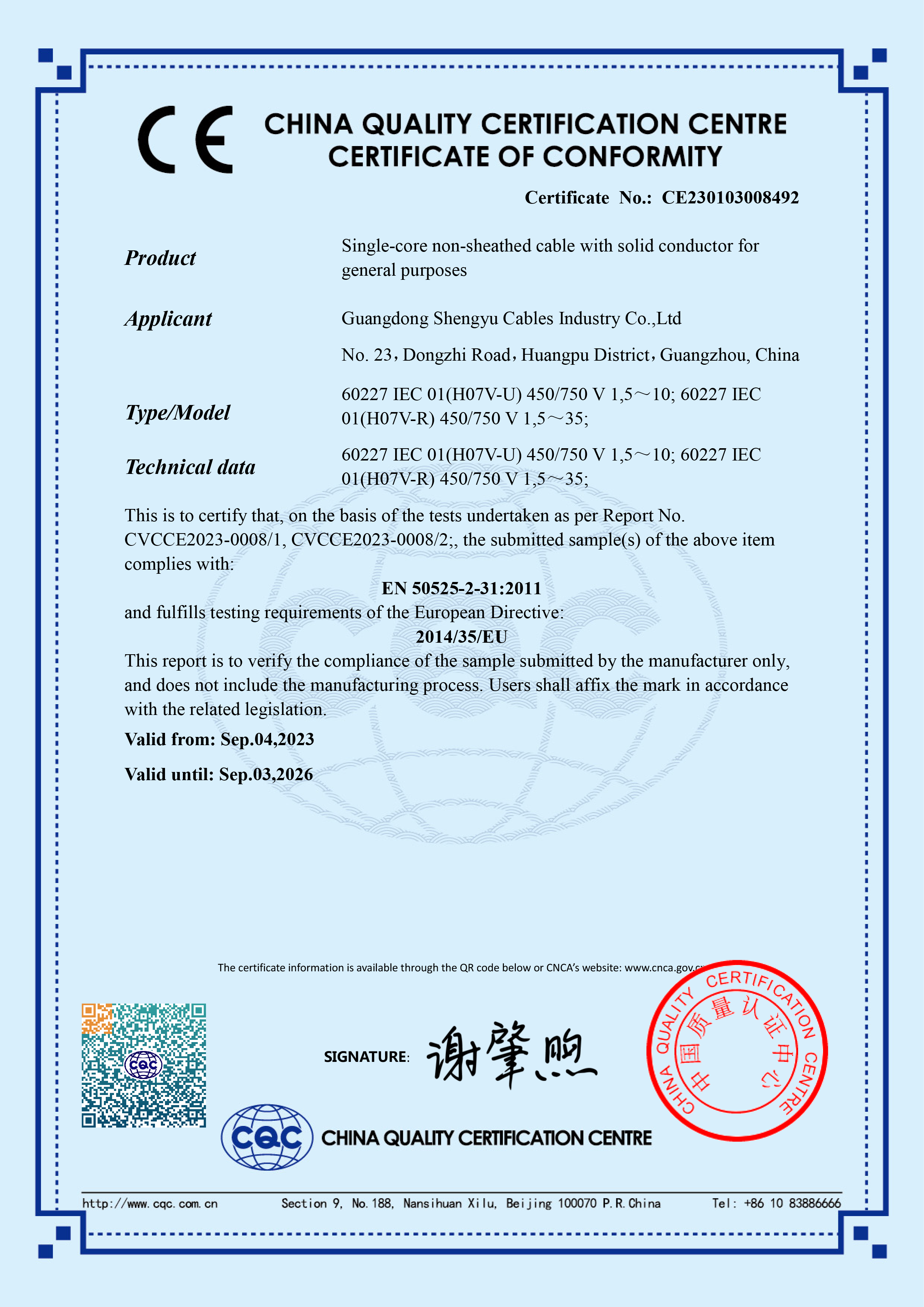 近日,勝宇電纜多項(xiàng)產(chǎn)品經(jīng)過(guò)多重審核,順利通過(guò)歐盟指定認(rèn)證機(jī)構(gòu)中國(guó)質(zhì)量認(rèn)證中心CQC和意大利ECM認(rèn)證中心審核測(cè)試,獲得歐盟CE認(rèn)證和IECEE國(guó)際電工委員會(huì)CB認(rèn)證。同時(shí),經(jīng)過(guò)瑞士權(quán)威檢測(cè)機(jī)構(gòu)SGS檢測(cè)通過(guò),產(chǎn)品完全符合歐盟RoHS環(huán)保指令。
